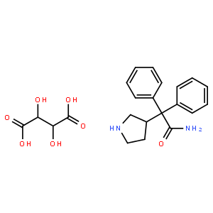 | English alias: | (S)--Diphenyl-3-pyrrolidine acetamide L-Tartaric Acid Salt ; (S)-alpha,alpha-Diphenyl-3-pyrrolidineacetamide L-tartaric acid salt ; Darifenacin Intermediate 5 ; (S)-α,α-Diphenyl-3-pyrrolidine acetamide L-Tartaric ; Darifenacin Intermediate 8 ; (S)-Alpha,Alphal-Diphenyl-3-Pyrrolidineacetamide tartrate ; 3(S)-(+)-(1-carbamoyl-1, 1- Diphenylmethyl) pyrrolidine-L (+)-Tartrate; 3(S)-(+)-(1-carbamoyl-1,1-Diphenylmethyl)pyrrolidine-L(+)-Tartrate | |